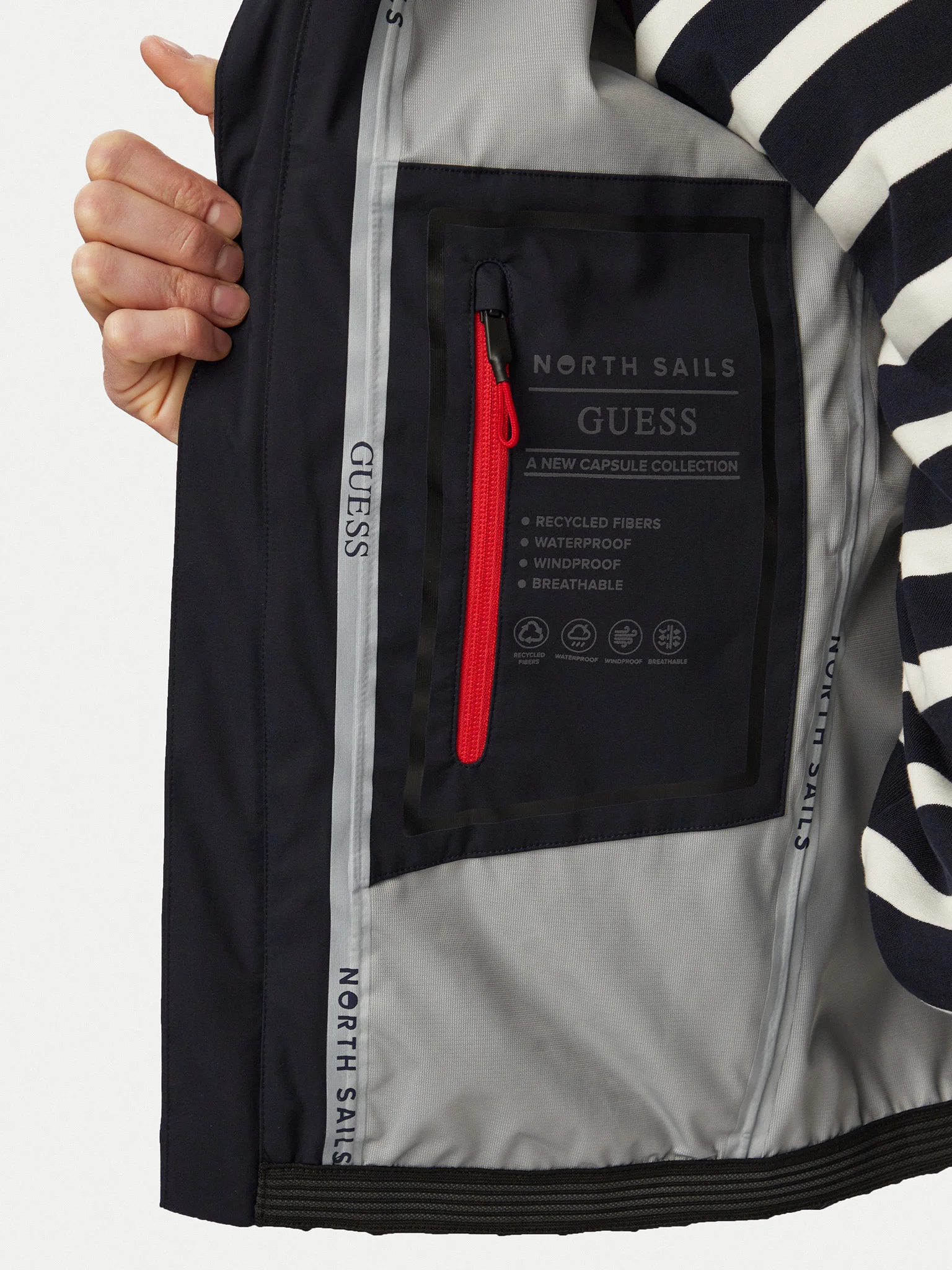Guessxns 3 Layer Windbreaker di Guess. Windbreaker con zip frontale, colletto alto e fondo elastico.